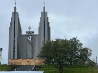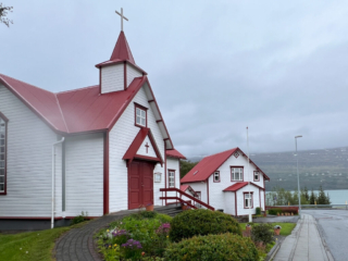 First, the Hof concert hall. Somewhat of a disappointment in that there is not performance scheduled this weekend and for the foreseeable future. The Akureyri Symphony’s season begins in September. We couldn’t even peek into the concert hall to compare it to the Harpa and the Sydney Opera House.