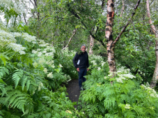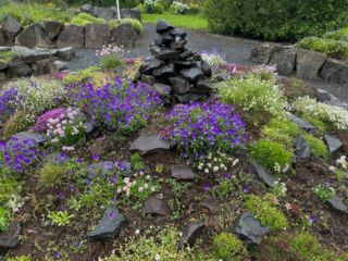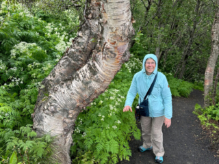 The gardens featured, of course, Arctic and Icelandic flora. We’ve seen many of the Icelandic flowers on our travels. The garden, however, includes plants from all over the world, the colder climates anyway. The biggest tree we’ve seen in our travels here was a cottonwood imported from Alaska. Cottonwoods are apparently quite abundant in Akureyri. Some of the other species aren’t quite so adaptable to near-Arctic conditions and have to be planted as annuals.