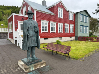 The other exhibits focused on life in Akureyri way back as far as rock and roll bands from the 1960s, home life of that era, etc. There was an old wooden stave church and the boyhood home of Jón Stefán Sveinsson (1857-1944), aka Nonna. He was born near Akureyri but after his father died at age 11, his mother didn’t have the wherewithal to care for him. A French nobleman offered to have him educated in Europe so, at the age of 12, he left his mother, never to see her again. He eventually became a Roman Catholic priest, a big leap for an Icelandic Lutheran. He lived in many places around the world and became the author of 12 children’s books that have become much loved favorites for many generations. Nonna returned to Iceland only twice, briefly, once to be named an honorary citizen of Akureyri. He died in a bunker in Germany in 1944.