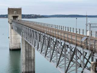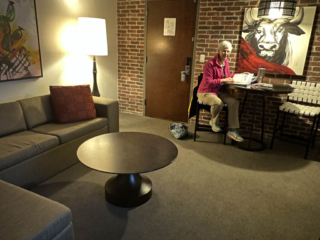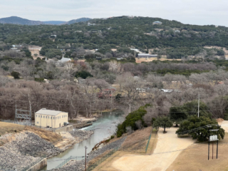 Next, we drove somewhat aimlessly south toward San Antonio, passing through more Hill Country including a stop to view a big dam project that formed Crystal Lake. The sun was setting, and the right-seat birthday girl (plus a day) was getting hungry so we stopped to top off the battery and hopped on Interstate 35 to swam with the rush hour trout into San Antonio to the Hotel Contessa, our overnight accommodations. It’s on the Riverwalk and near the Alamo so we should have good sightseeing opportunities tomorrow.
