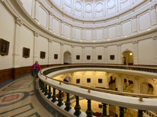 Stop #1: the Texas State Capitol in downtown Austin. I won’t try to describe the building but it’s quite nice and, fitting Texas, large. The legislature meets for 140 days every other year so most of the time it serves as a tourist attraction. We had a very nice 45-minute guided tour.