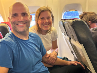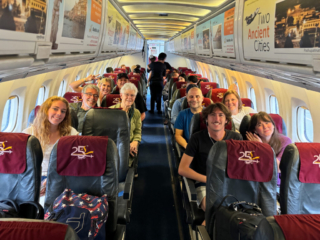 Talk about your nail biter. Rebecca and her boyfriend Sammy were scheduled to fly Chicago-Doha-Kathmandu, arriving 2 AM today, Tuesday. (Rebecca was at the American Diabetes Association meeting.) Our flight to the Chitwan National Park was scheduled to leave Kathmandu at 10:15 AM. Plan was, they would come to the hotel, catch a few Zs and we’d all head out for two days in the jungle at Chitwan. Safari, Elephants, Canoe Ride, more Safari.