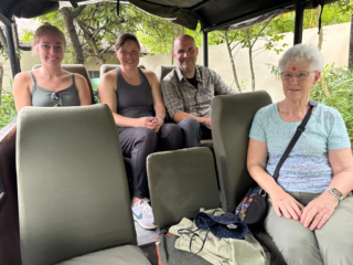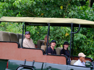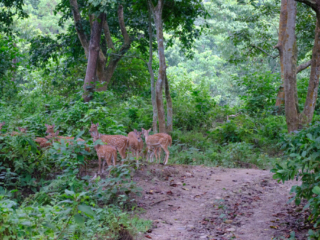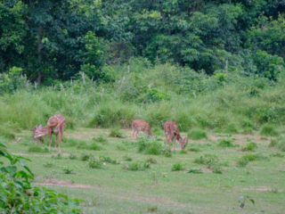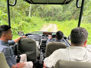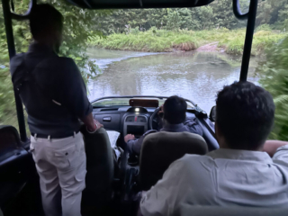 The big event today was a 4 PM safari by jeep. Our naturalist gave us a thirty-minute slide presentation of what we might see. The big deal here is the tiger. One with two cubs has been spotted recently in front of the lodge but they are rare. Rhinoceroses are more common. Spotted deer are just about everywhere. But of course there are no guarantees.