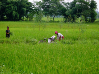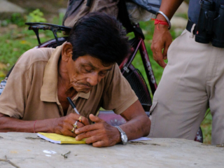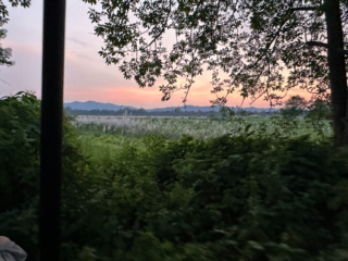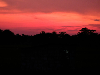 Dinner tonight was outside and included entertainment by a troupe of dancers from the local community. I didn’t follow all of the explanation but the gist of it seems that the local tribe, the Tharu people, dance these dances to keep their culture alive. Some seemed to be stylized war dances. The grand finale had us all up dancing a variety of moves, all to the beat of drummers and a chorus of women singers chanting who-knows-what. The dancing was inserted between an elaborate appetizer course (multiple items served individually) and the main course that had something to do with chicken and a lot of other items served with little illumination. But it tasted good and will hold us to breakfast.