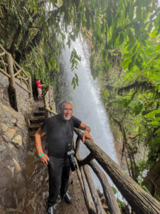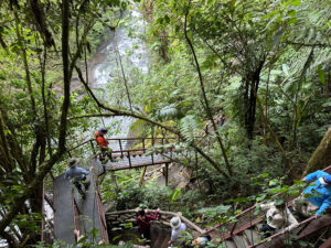 The second part of the visit was a hike down to the la Paz river where there are three fairly impressive waterfalls to be seen. The walk down through what is probably termed a cloud forest was quite nice. The foliage was interesting and colorful. Fortunately, there was a shuttle bus near the bottom of the hike so we were spared the entire return hike up the hill.