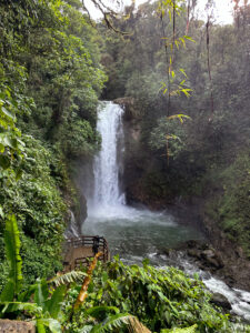 Today we boarded our bus, sorry, coach, for a day in the hills north of San Jose where conditions are right for coffee production as well as raising fruit crops like strawberries and raspberries and where cows are grazed for milk production. We also visited the La Paz River Waterfall and Nature Preserve.