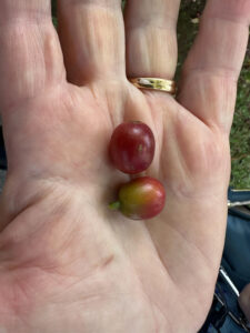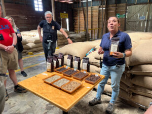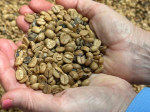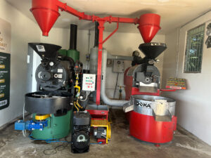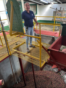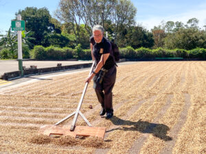 We were shown the coffee production process, much of it manual or with antiquated machinery, that’s been used for 100 years. Until, that is, this year, when modern high-efficiency machinery has replaced the old. Before, coffee beans were dried outdoors in the sun, requiring hourly stirring with a wooden rake and quick-as-a-bunny covering of the crop with plastic sheets when rain threatened. That’s all done by a drying machine now.