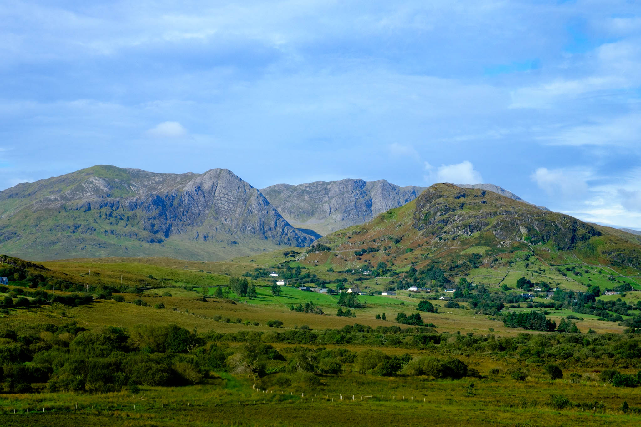 Connemara is known for its rugged scenery and while this is accurate, the hills have a soft, rounded character with a variety of colorful hues. The hills are virtually free of trees so there is no timber line.