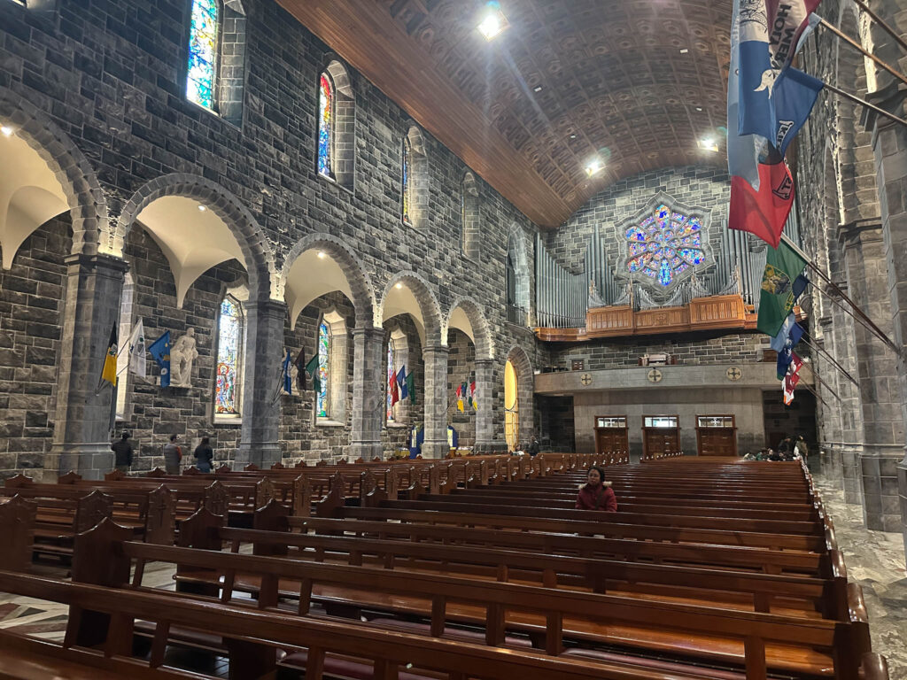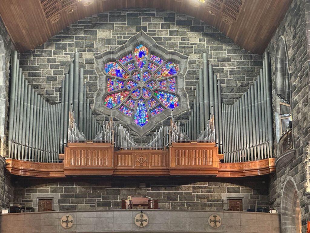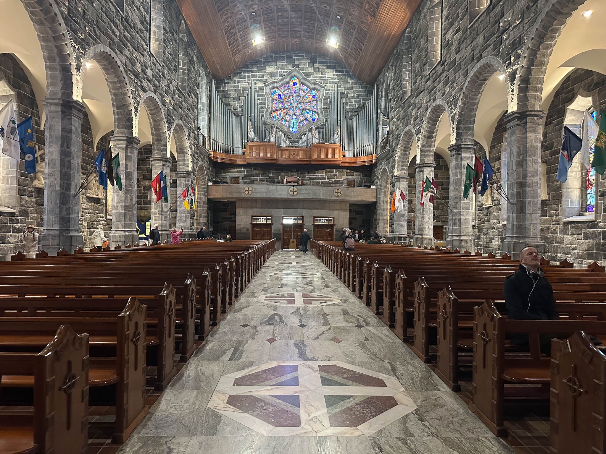 Back in Galway we toured the Cathedral of Our Lady Assumed into Heaven & St. Nicholas. Don’t ask me. I just tour here. It’s the last cathedral constructed in Europe, having been built from 1958 through 1965. An enormous stone structure, it is truly awe inspiring. We felt, however, that the sharp angles and preformed stone pieces gave the place a cold, sterile feeling. Maybe the rough edges will be worn down and visitors 500 to 1,000 years from now will feel differently.