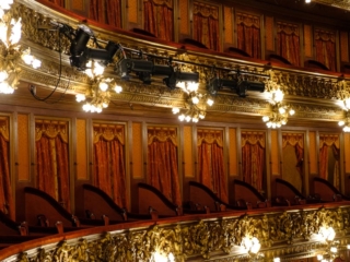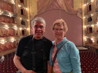 - Returned to the Teatro for our tour. I failed to mention that the only tickets available were for a Spanish language tour. We nodded thoughtfully as the guide prattled on and on for 50 minutes. But the theater is beautiful. It reminded Sharon of the Vienna opera house.