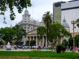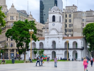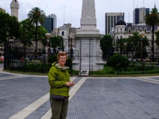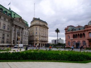 - Took a city bus tour to see the major sites, including the Plaza de Mayo that we visited on foot yesterday. The pink building is in fact the Casa Rosada (Pink House). “I’ve visited the White House in the U.S. We need a color for our executive house,” said the then-president. Pink was chosen because the paint mixed with the blood of bulls would best resist the high humidity of the city. And yes, the balcony on the left is where Evita appeared and Madonna sang. (“Poor choice of an actress to play Evita,” grumbled Cynthia, one of our guides.)
