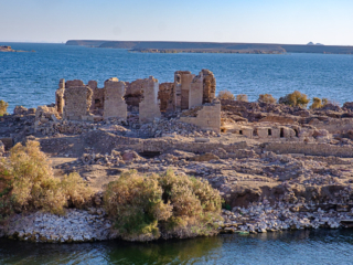 Earlier, as we sailed toward Abu Simbel, we passed by Kasdr Ibrim, the only remaining Nubian building that survived Lake Nasser. It’s a fallen down fort that later on was used as a mosque.