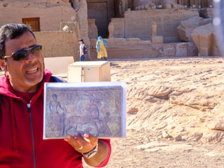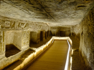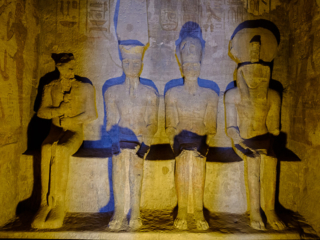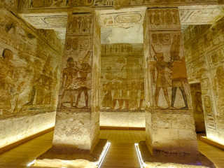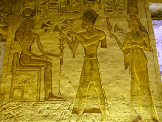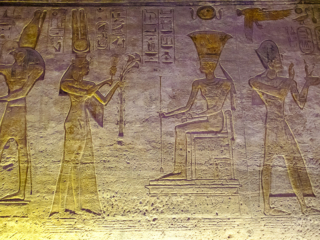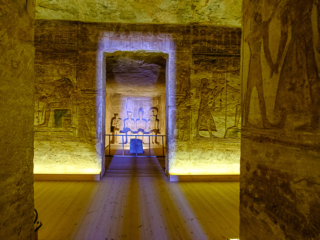 Both temples had to be moved in the 1960s as the waters of Lake Nasser rose. It was a close thing; a dam had to be constructed around the temples so they could be moved up the hill a few hundred yards. Because the exterior statues were not freestanding, but rather had been carved from the face of a mountain, they had to build a new artificial mountain. The statues were cut off in pieces and then glued back on the face of the new mountain. Not only that, but the original temples had been designed so that the sun’s rays shone through a slit so as to illuminate statues inside on a particular day in October and March to fall on four interior statues (but not a fifth, an out of favor gud). The new arrangement had to have the same orientation.