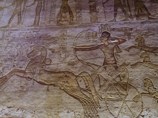 The big deal at Abu Simbel is actually not the inner sanctums. You’ve seen one wall carving of Ramses stabbing one enemy while stepping on another and grinding his nose into the ground, you’ve seen ‘em all. Don’t get me wrong; these were some of the nicest, must colorful ones we’ve seen. Being buried for all those centuries preserved them well. (The one about him shooting the arrow shows two bows and arrows coming from Ramses’ body. The other bow is the god Amun’s who has joined Ramses in war.)