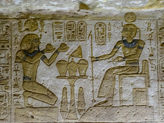 His temple, the big one, features four statues of himself carved from the wall of a mountain standing at the entrance. Each statue is 66 feet tall. Hers features six statues; each 33 feet tall. There are three statues on either side of the door: one of her flanked by two of him “protecting” her. Total count: Ramses 4, Nefertari 2. In his temple, Nefertari is shown much smaller than Ramses. I love you babe, but don’t get any big ideas; I’m still the pharaoh around here. Actually, in her temple they are shown as equal in size. She must have been some fine consort.