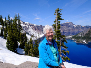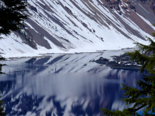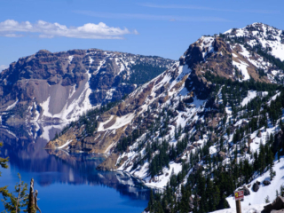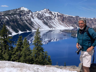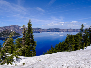 Take a look at the pictures of Crater Lake. We had an absolutely marvelous day – clear blue skies with temps in the 60s. Much of the park was still closed due to snow but the part that was open gave us great views.