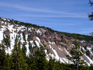 First of all, our route both eastbound to Crater Lake and westbound to Eugene passed through Oregon’s Cascade Range, climbing from a few hundred feet above sea level to as high as 5,000 feet on the road and 6,000 feet at Crater Lake. I’m no tree guy, but I believe many of the conifer stands we saw were Douglas Fir trees. In between the mountains the road passed through flat farmland and small towns. Nothing we saw gave the impression of great wealth, but the scenery was most satisfying.
