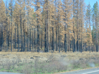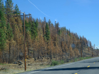 We saw several areas in the mountains that showed the effects of recent forest fires, something we easterners hear about but, like disasters that don’t directly affect us, we treat with passing interest. It’s one thing to see burned trees; they’ll grow back eventually. But to see, as I did, a cellar hole with a, let’s say “modest”, house trailer parked next to it brings it home to human reality.