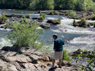 We made a stop, thinking it would provide a scenic view of the river, but found only a series of wall panels describing the Applegate Trail. A guy named Applegate in the 1850s forged a trail from the Columbia river south and east for about 500 miles, largely following the Rogue. The intent was to find an easier path for Oregon Trail pioneers to follow instead of the more dangerous path down the Columbia.