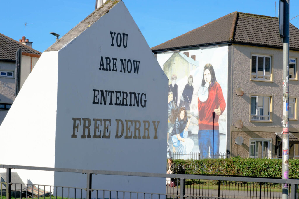 You Are Now Entering Free Derry sign – a slogan taken from the Free Berkeley movement of the 1970s.