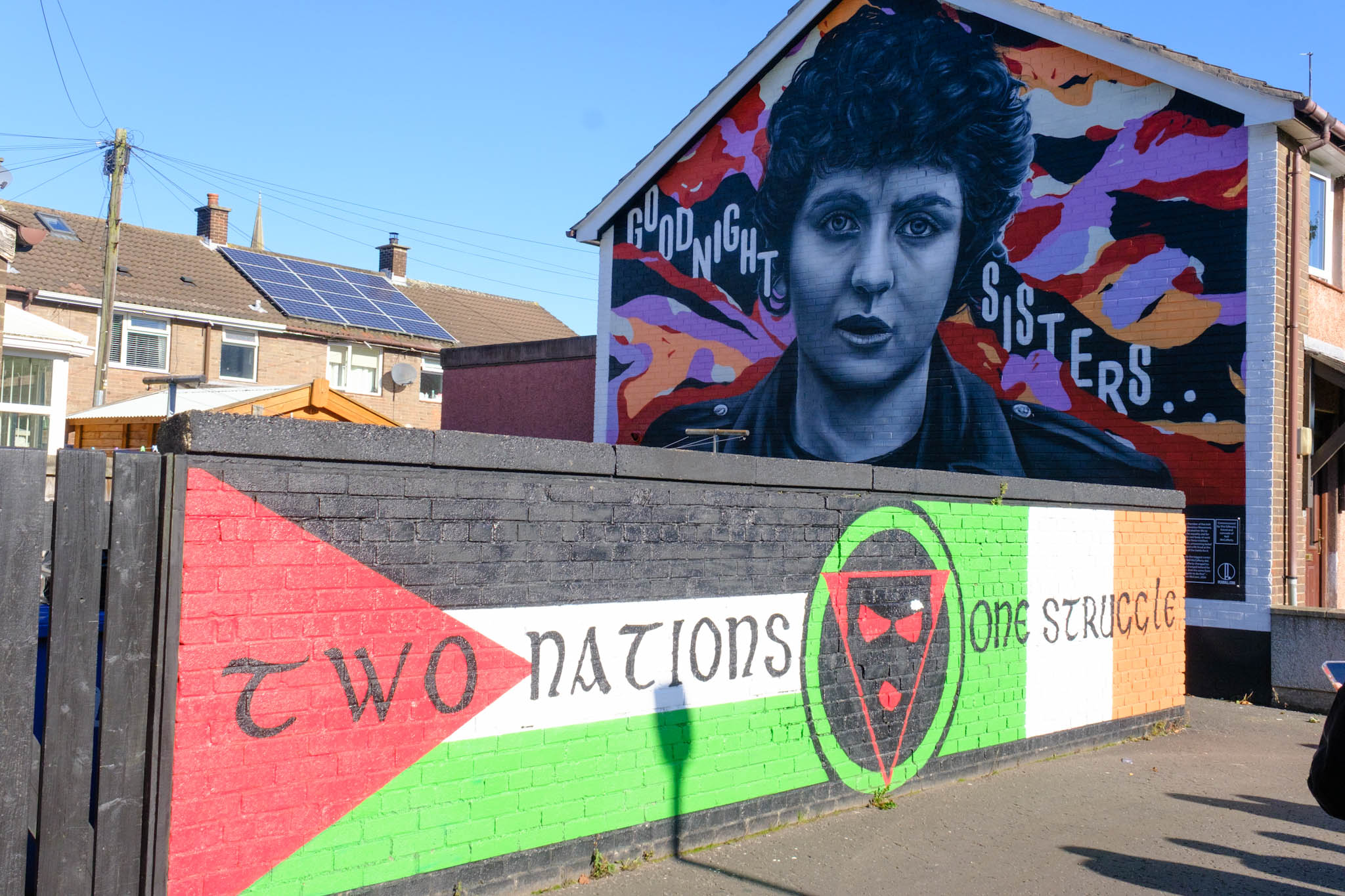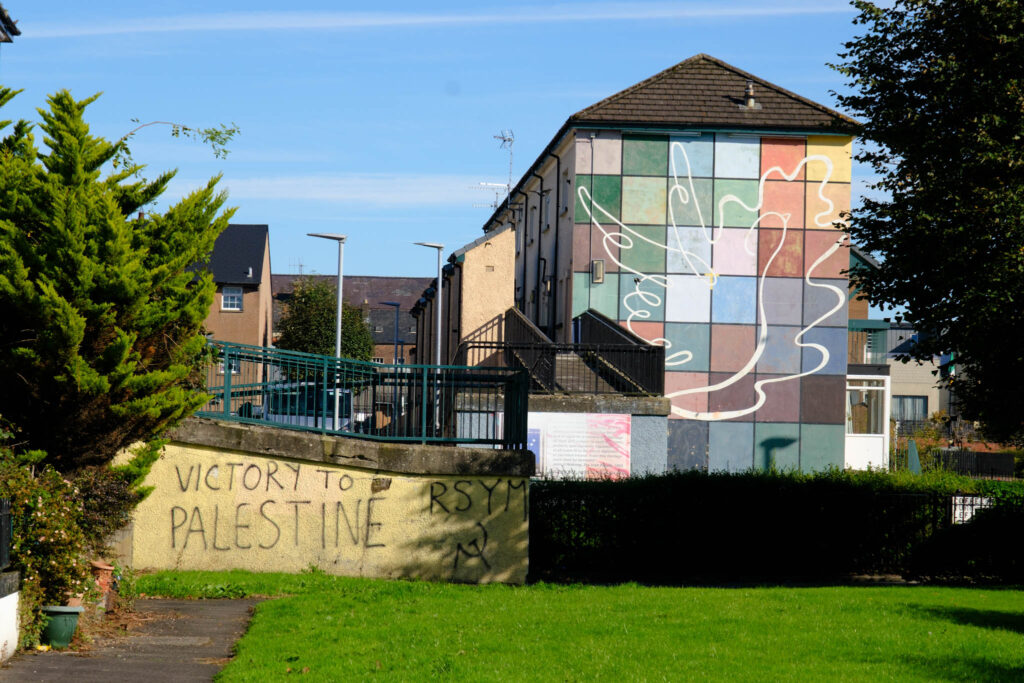 Support Gaza sign – people in Derry see the fight for Palestinian rights as parallel to their own: righting the wrong created by British imperialism.