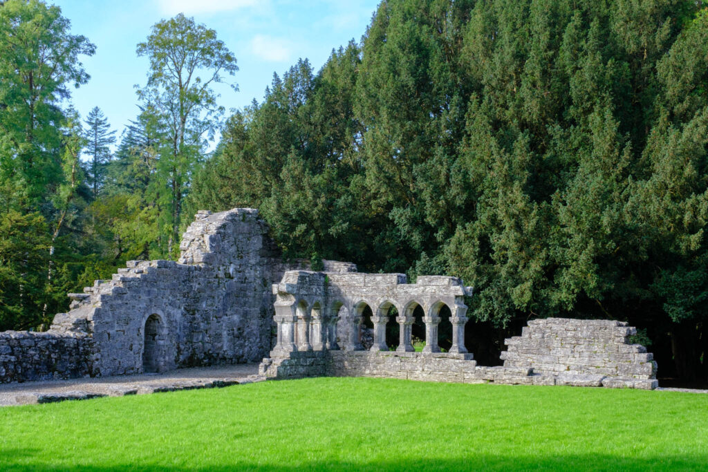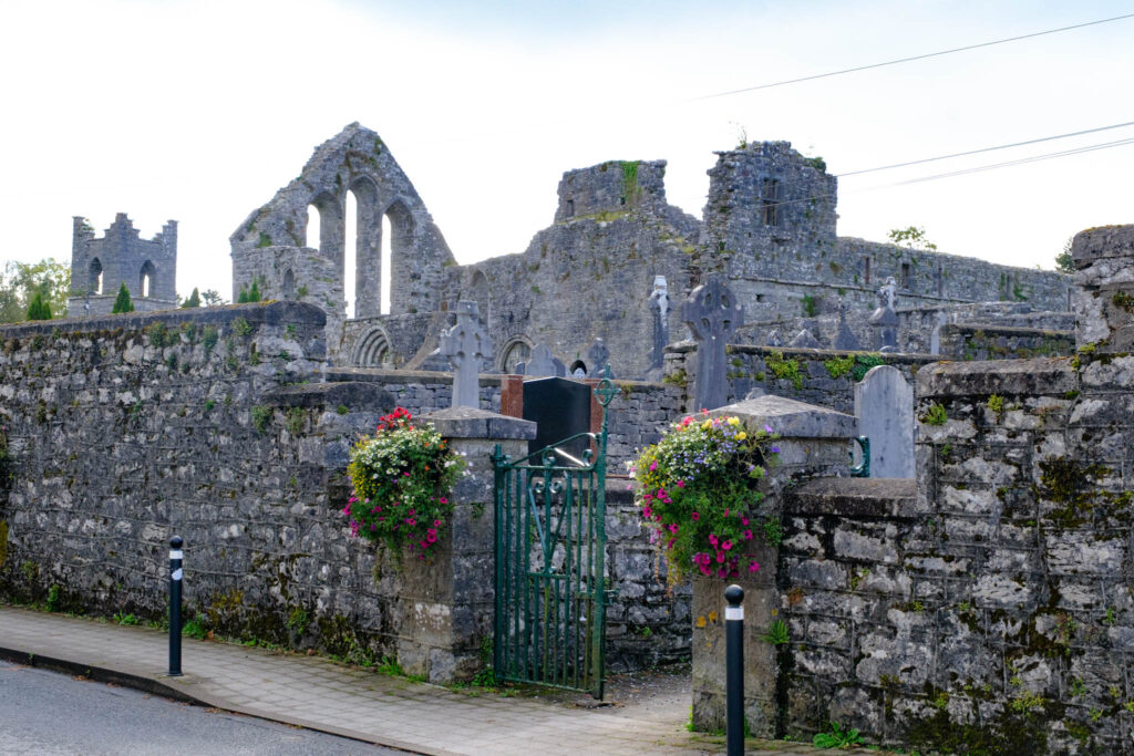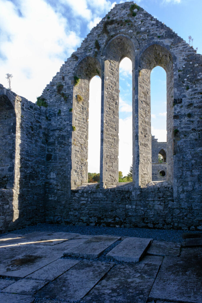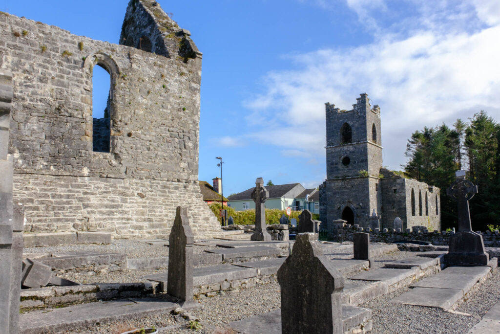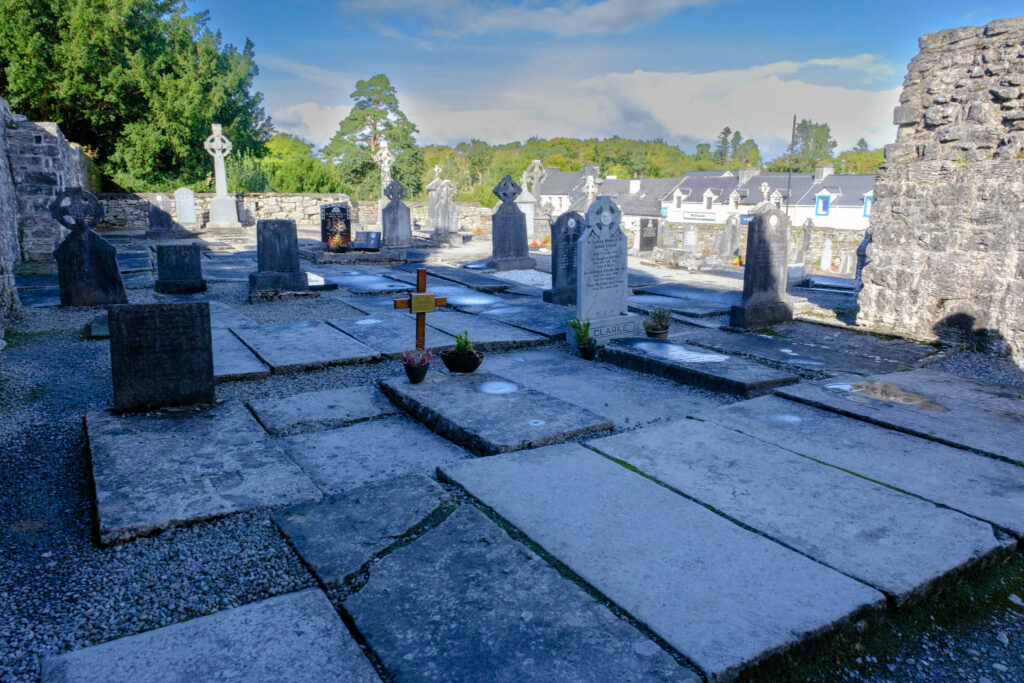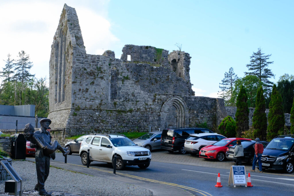 The first was Cong, County Cork. We were immediately struck by the cathedral ruins right by the side of the road. David agreed to our request for a walk around, during which we discovered Cong is famous for two things.