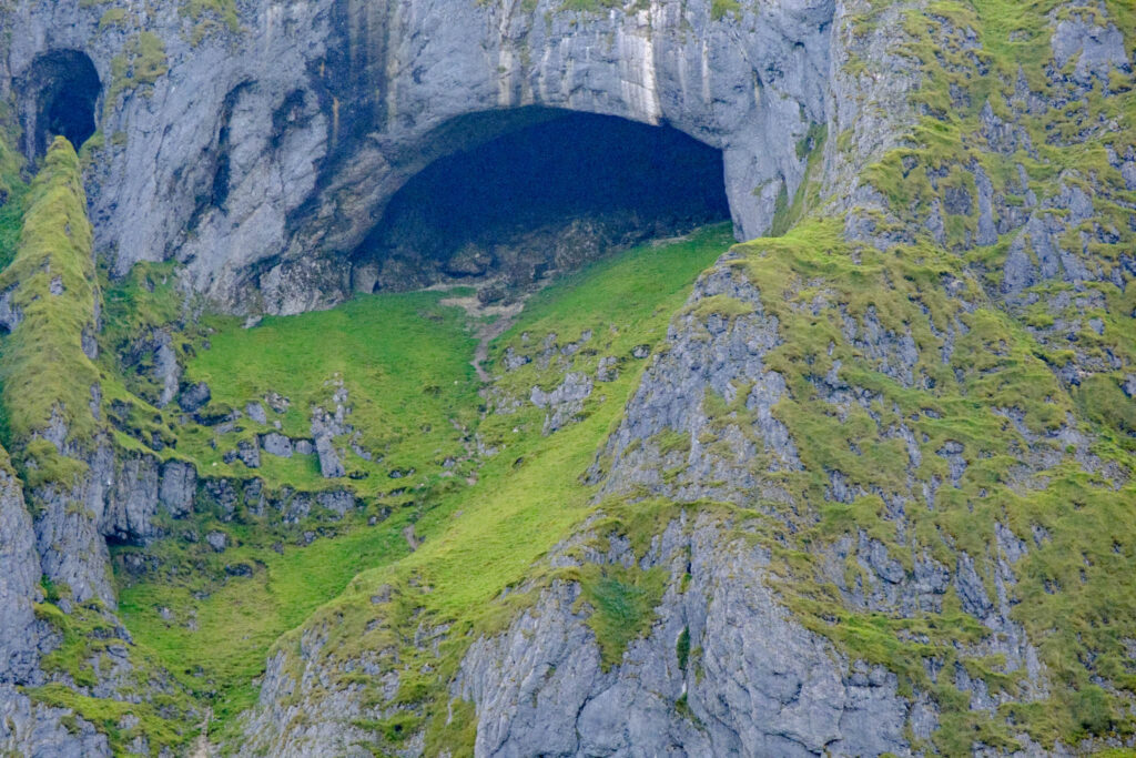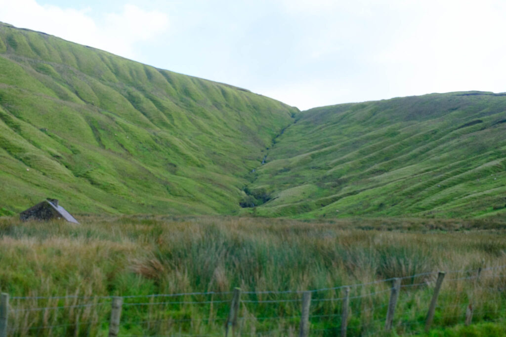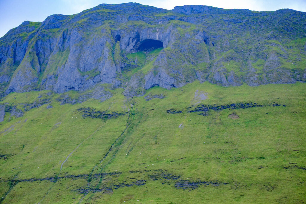 Next we viewed Diarmuid and Gráinne’s Cave, which is located above the cliffs of Annacuna, which is at the back of the Gleniff Horseshoe in County Sligo. The mountains in the Horseshoe are quite dramatic. And of course where there is a cave there is a legend.