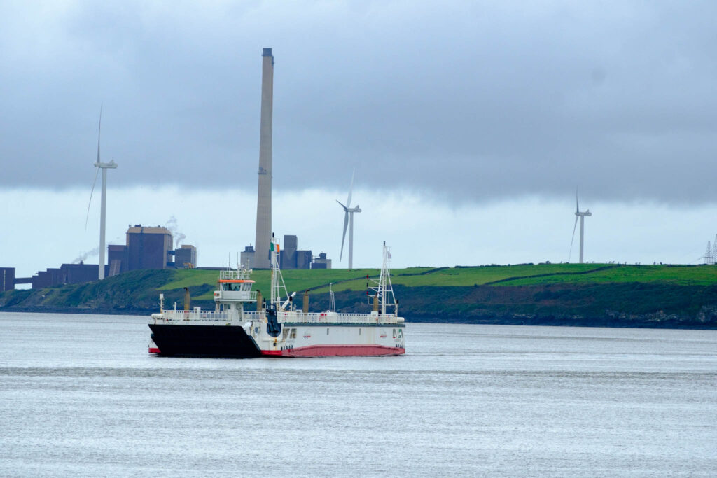 We drove northward, crossing the Shannon River to the town of Killimer in County Clare. The Shannon is the route Napoleon’s forces hoped to take to conquer Ireland, creating a base for invading England. The ferry took about 20 minutes on calm waters. There were power plants on either side. One that burned peat moss was decommissioned. The other, an oil burner, will be shut down soon in favor of wind power.