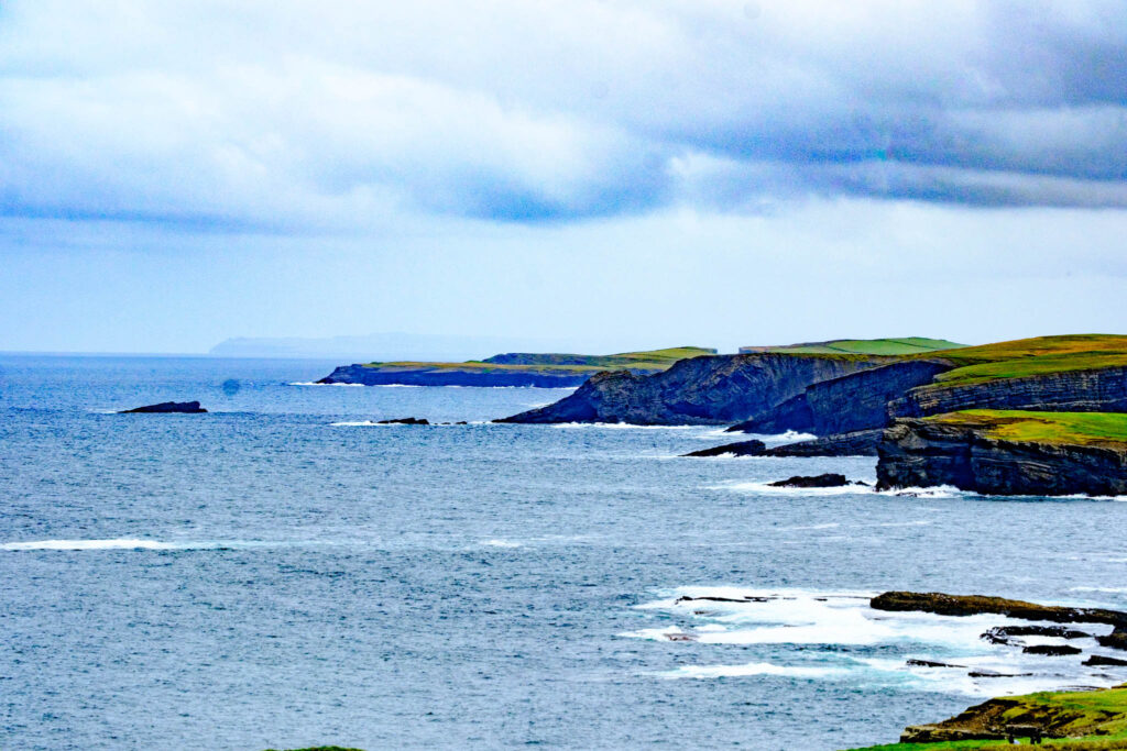 “The Kilkee Cliffs, are located near Kilkee in County Clare, Ireland, not far from the famous Cliffs of Moher. The Kilkee Cliffs offer a more authentic, less crowded experience with beautiful scenery, walking trails, and views of the water crashing against the shoreline, though they are less commercialized than the larger, more famous cliffs nearby.”