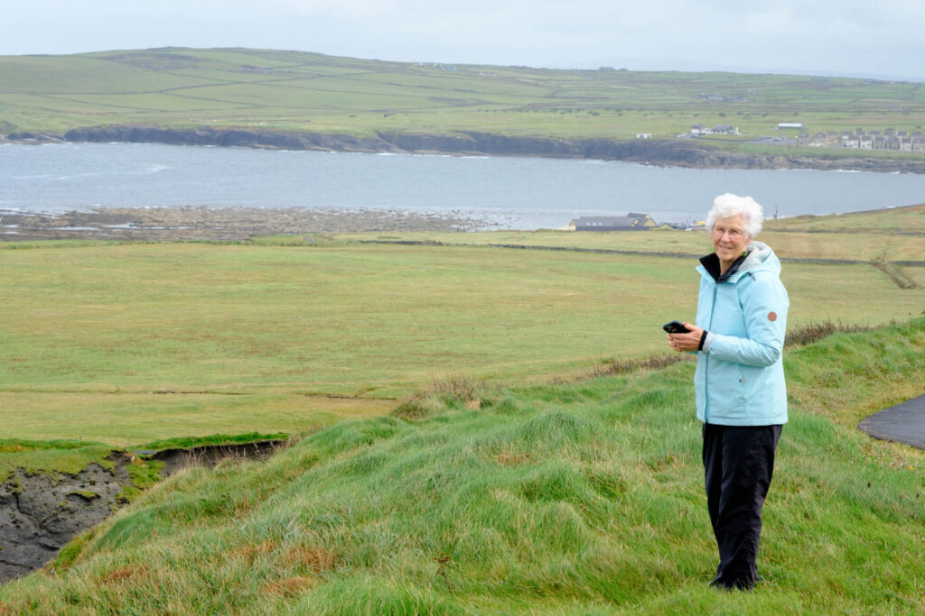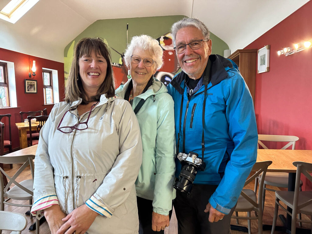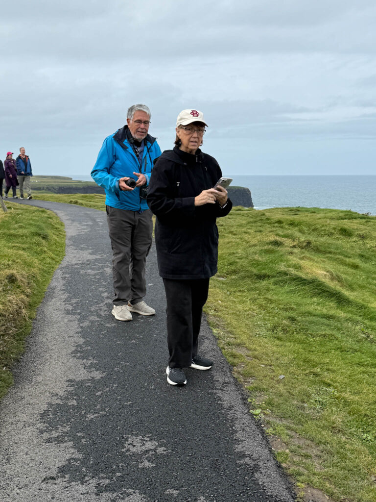 We had sandwiches for lunch at the sheep farm and while there Carmel, the lady who helped us put together our trip’s itinerary and hired David made a special trip out to meet us. So much fun to put a face to the name that has done such a great job helping us plan. Actually, Carmel and David are neighbors and also a great team. David isn’t afraid to suggest alterations to Carmel’s plan tha he feels will work better, considering our likes and his knowledge of the area. Today’s cliffs viewing is a good example.