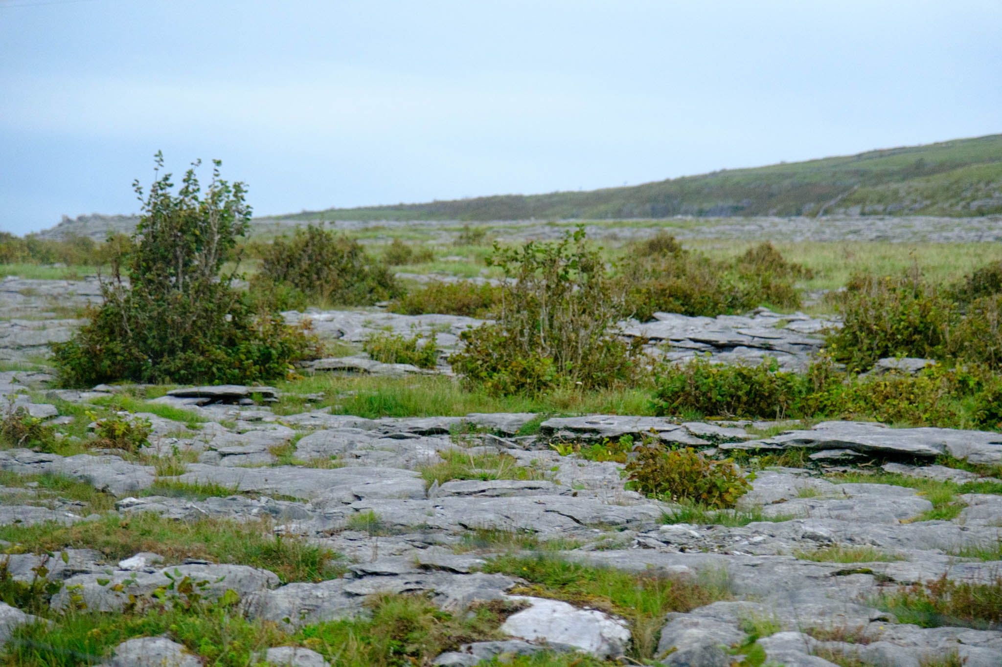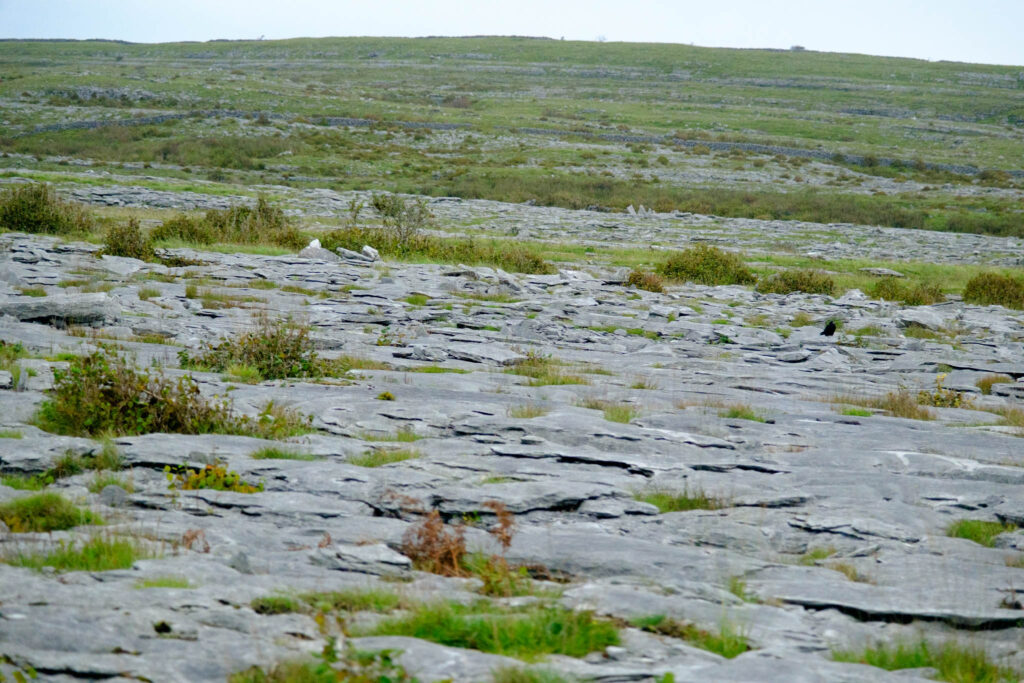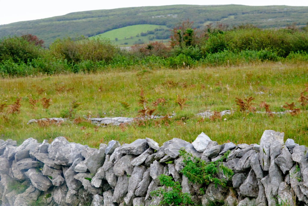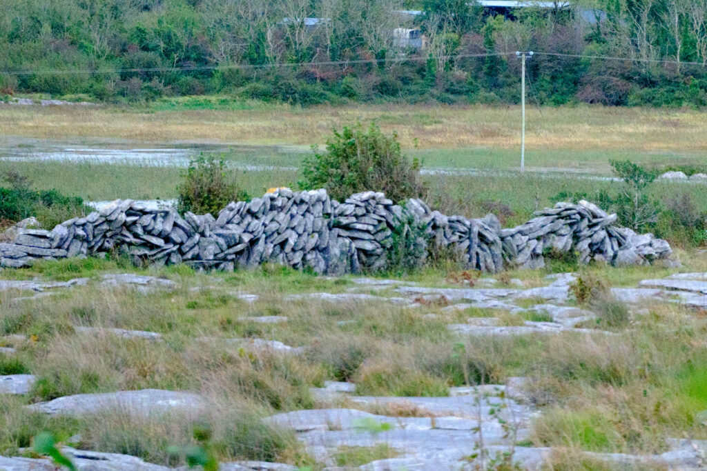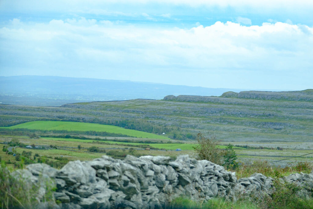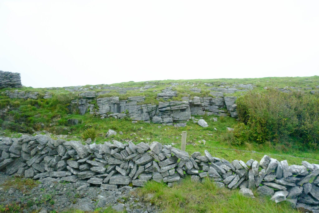 Then a drive through the Burrens, an area of sandstone stretching for miles on the flat and on hills. This land was once under the sea. The sandstone is composed of ancient fish and marine mammal bones. They were uplifted by tectonic forces, altered by the ice age and are now form a barren landscape. Cromwell’s soldiers forced the Irish from the more fertile areas of the east coast onto this land.