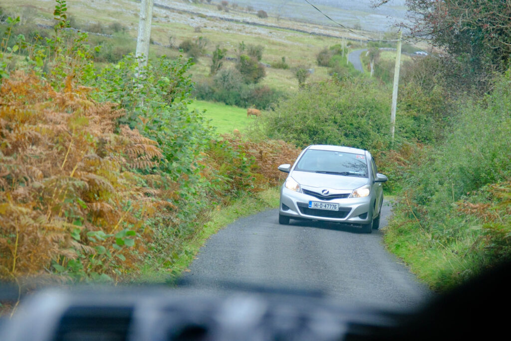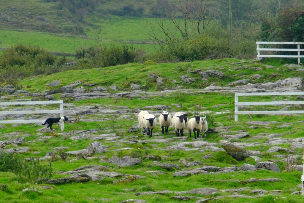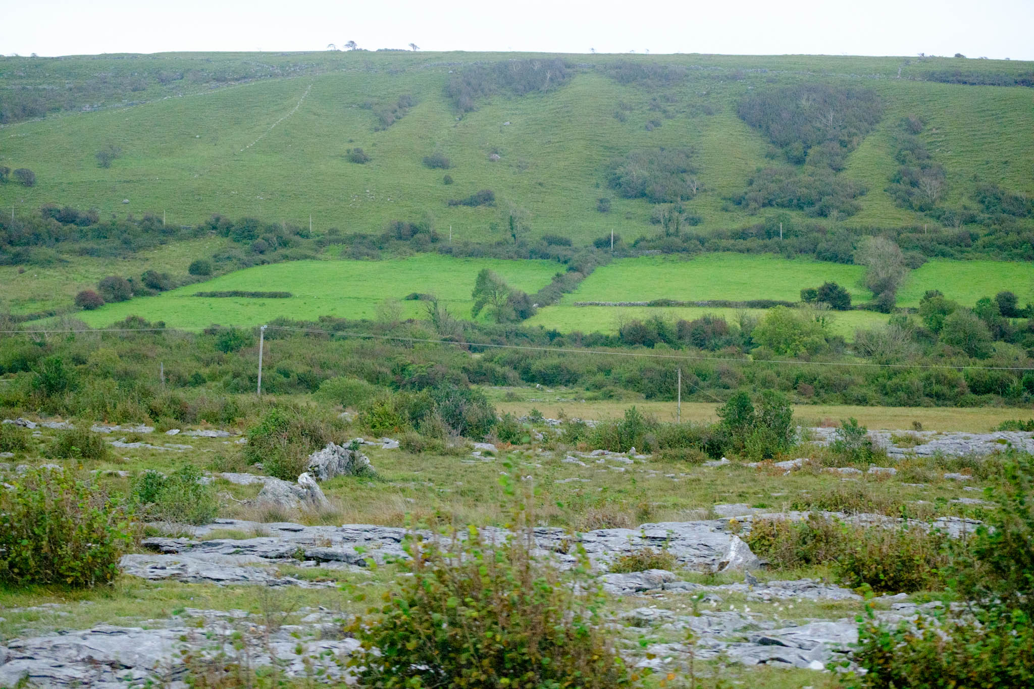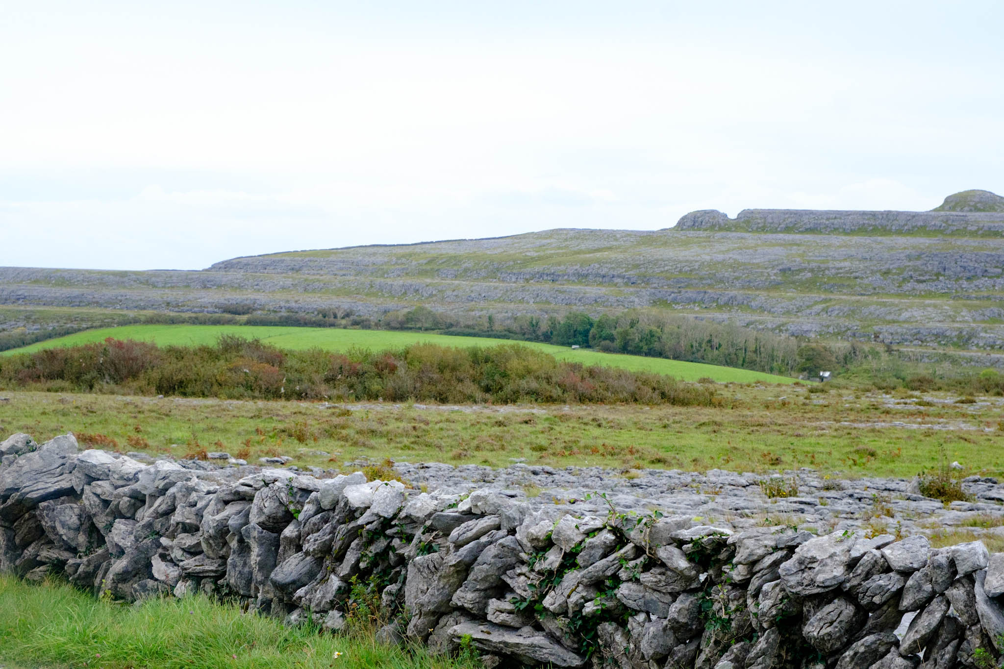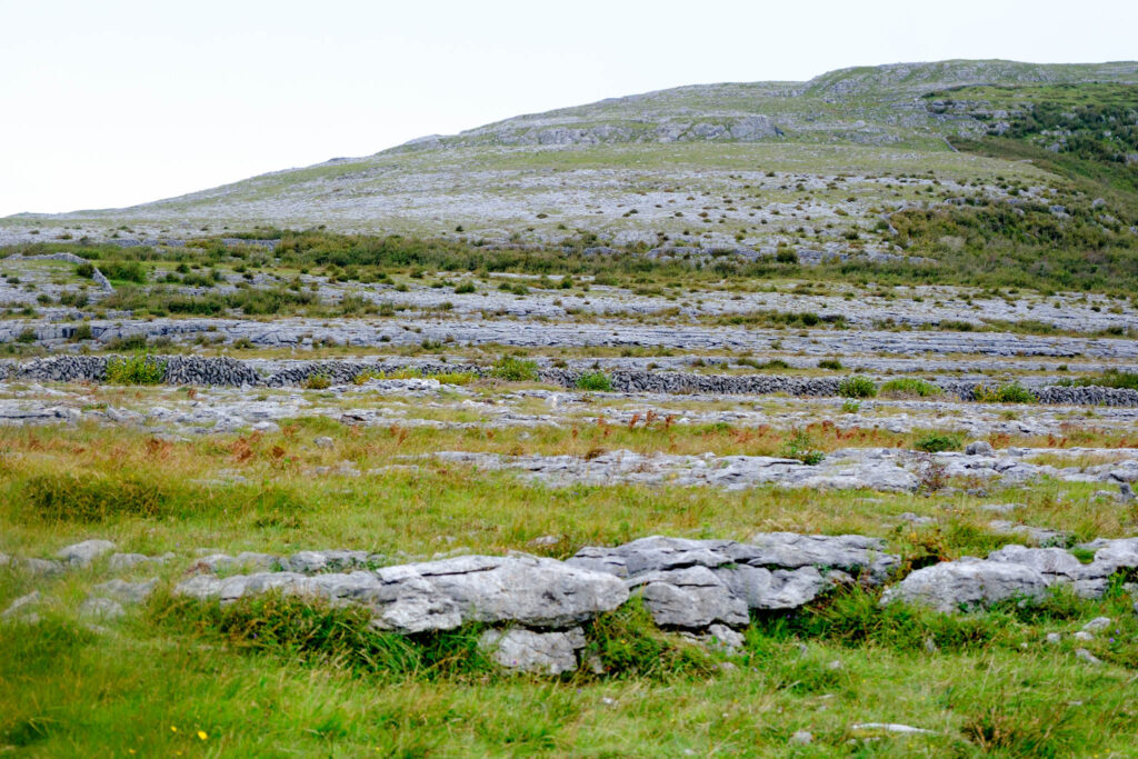 Then a drive through the Burrens, an area of sandstone stretching for miles on the flat and on hills. This land was once under the sea. The sandstone is composed of ancient fish and marine mammal bones. They were uplifted by tectonic forces, altered by the ice age and are now form a barren landscape. Cromwell’s soldiers forced the Irish from the more fertile areas of the east coast onto this land.