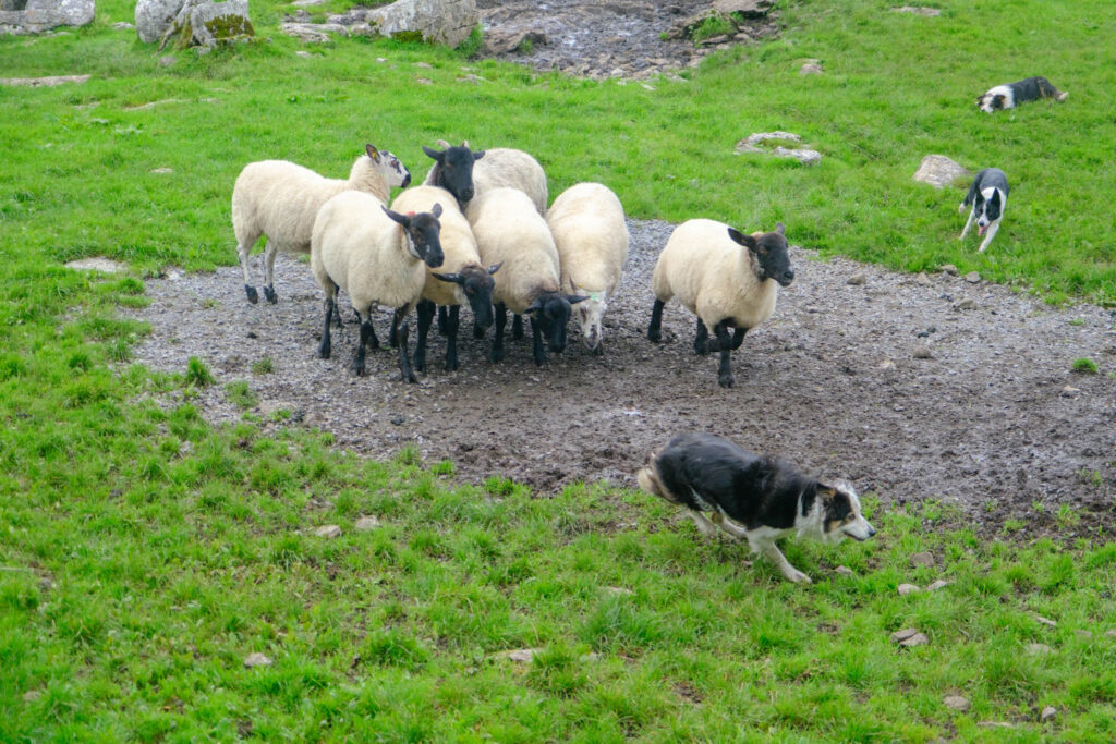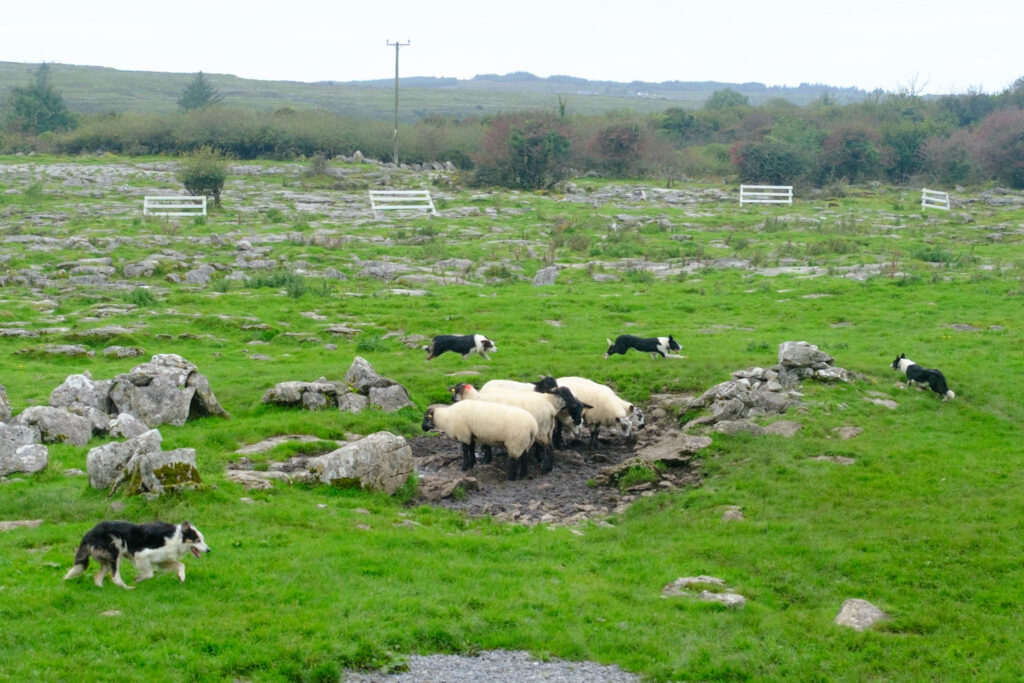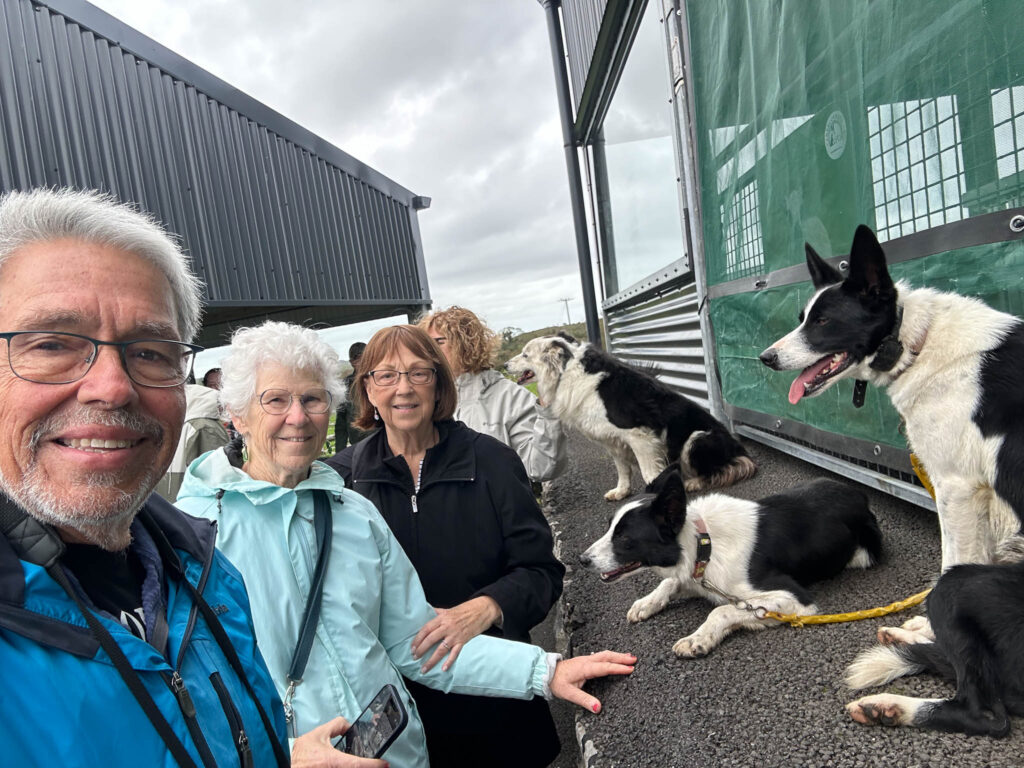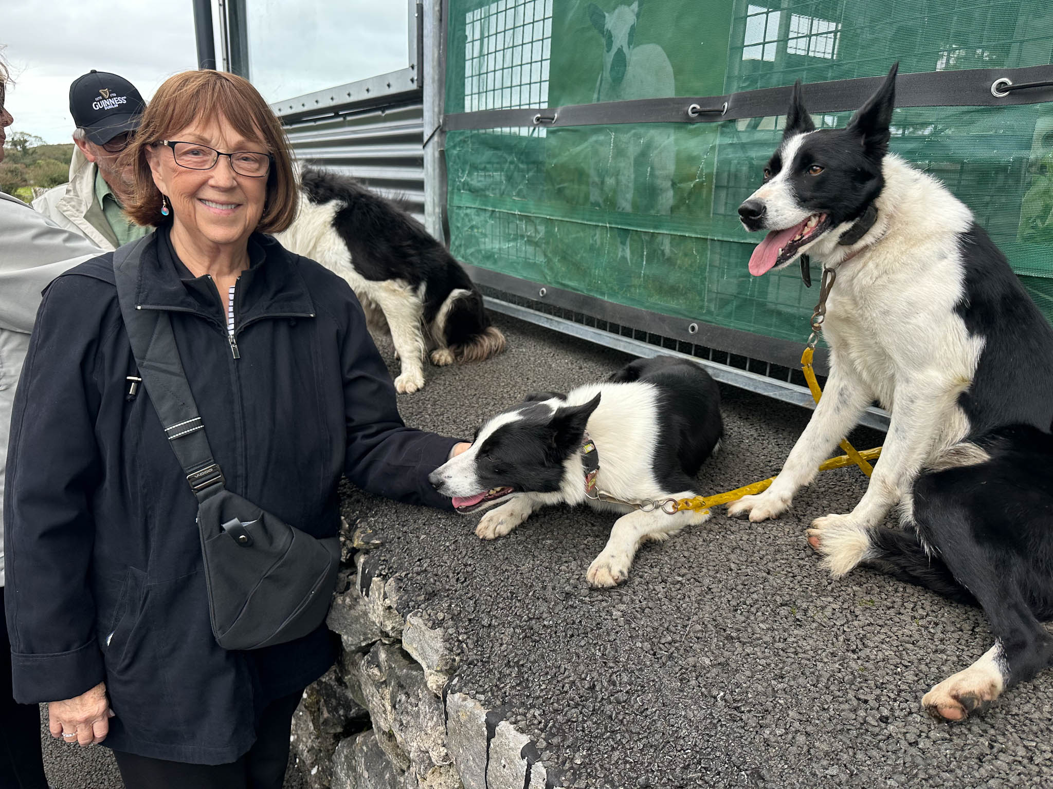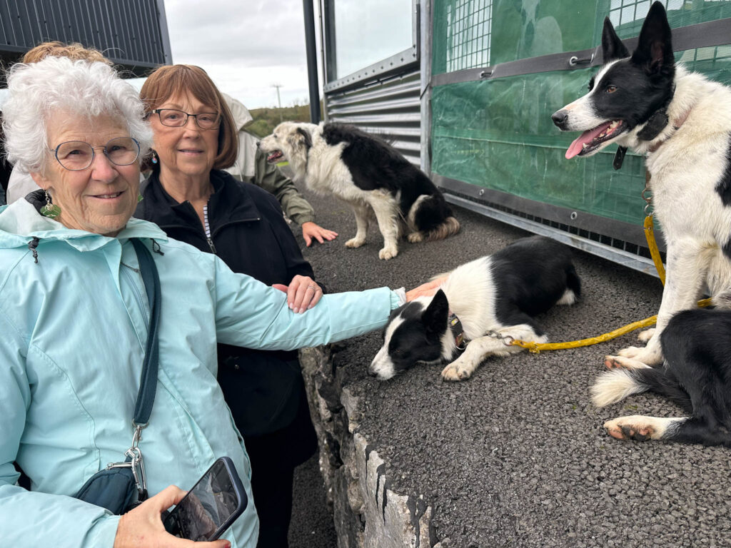 We had seen sheep dogs in action on the Kerry Loop, but this was a closeup demo of dogs with commentary of what was going on. Four dogs herded eight sheep, the dogs directing them through a precise path. Each dog was controlled by the shepherd using unique commands issued by whistles and voice calls. Truly amazing.