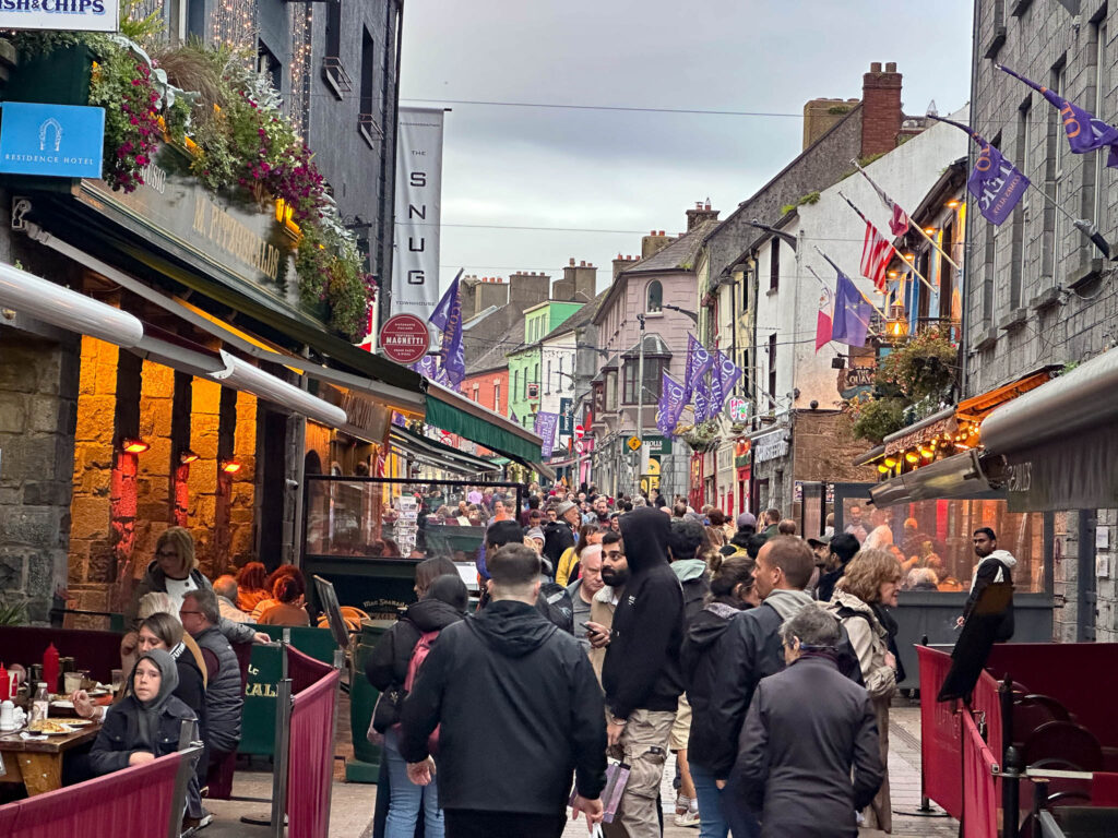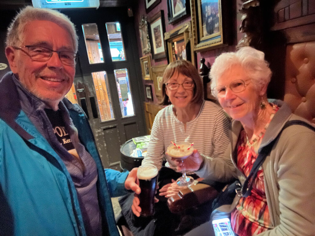 And then, Galway. It’s a bustling city and our rich fourth-floor apartment is a 25 minute walk to the center of downtown where all the shopping and restaurants for tourists are located. We followed David’s advice and dined at the King’s Head restaurant. It’s advertised as “Irish Pub of the Year 1651.” That’s the year Oliver Cromwell had King Charles I beheaded. Fish and chips for me, chicken for Nancy and crabs for Judy. Some really good onion rings too. And for me, a first-ever Irish Red beer. It won’t quell by thirst for Guinness, but it ain’t bad either.