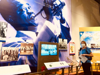 We then visited the Capital Park Museum which gave us Louisiana history including the Louisiana Purchase, the Acadian, Creole, and Cajun peoples and Mardi Gras. There was a large section on the history of music which we both really enjoyed. We learned more about Huey Long. There is a large statue of him facing the State Capitol building where he was assassinated.