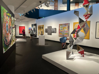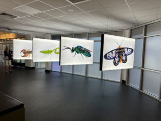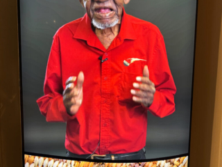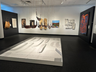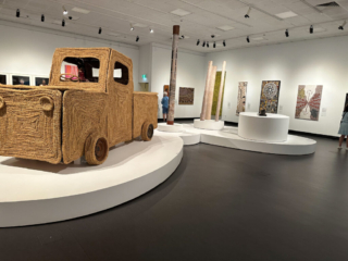 • A display of indigenous art that resulted from a competition sponsored by Telstra, a local cell phone company, called the 2023 National Aboriginal and Torres Strait Islanders Art Awards. The artists are from the various aboriginal communities scattered across the Northern Territory, many amateurs or “emerging artists,” some professional. I’m no art critic but I found the art to be quite good and certainly interesting, most of it impressionistic with a few photo and video pieces included. Many used local materials and pigments.