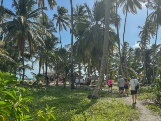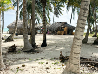 The San Blas archipelago is owned by the Kuna people. They also have a mainland community. They had been fierce enemies of the Emberá people we visited on the Darien peninsula and even today the elders view Emberás with suspicion. Not so much the younger generations. The Kuna favored English and French back then on the theory that the enemy of my enemy (i.e., the Spanish) is my friend.