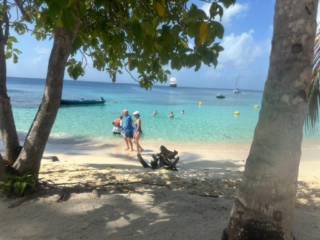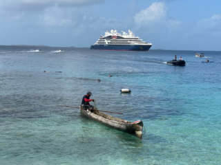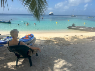 Today was mostly a beach day at the Hollander Cayes, part of the San Blas archipelago, Panama. A sandy beach, snorkeling and natives selling handmade embroidered fabrics was the order of the day. Judy and I were on the first zodiac off the ship and returned shortly before noon. We relaxed, had lunch and a nap, started packing and had dinner with our friends Martha, Dale, Pam and Steven.
