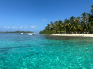 San Blas represents 378 coral islands that form a barrier reef off the Caribbean coast of Panama. Roughly 35 islands are inhabited; residents of one island had to be relocated to the mainland due to rising ocean levels. The Holandes Cay we visited today is home to four families. The kids attend boarding school on the mainland. This is vacation time so the kids were very much in evidence.